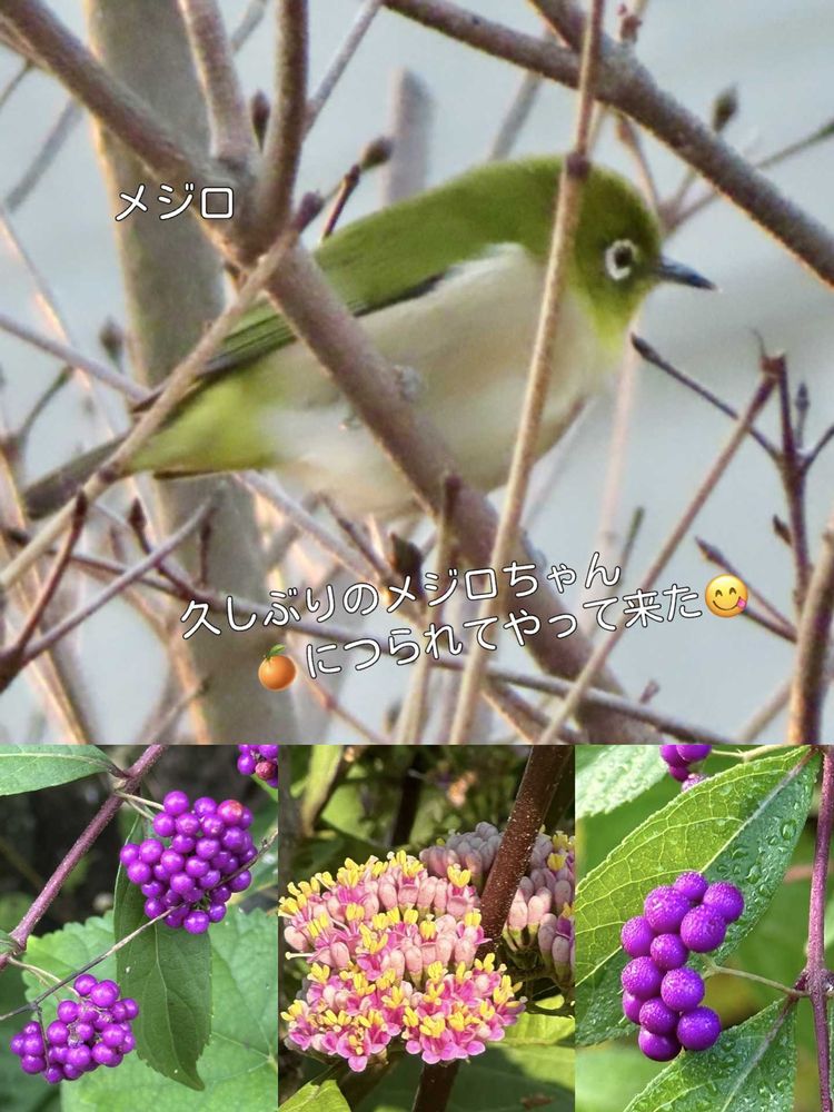 🐤メジロ(冬鳥)と紫式部🐤今日のお花