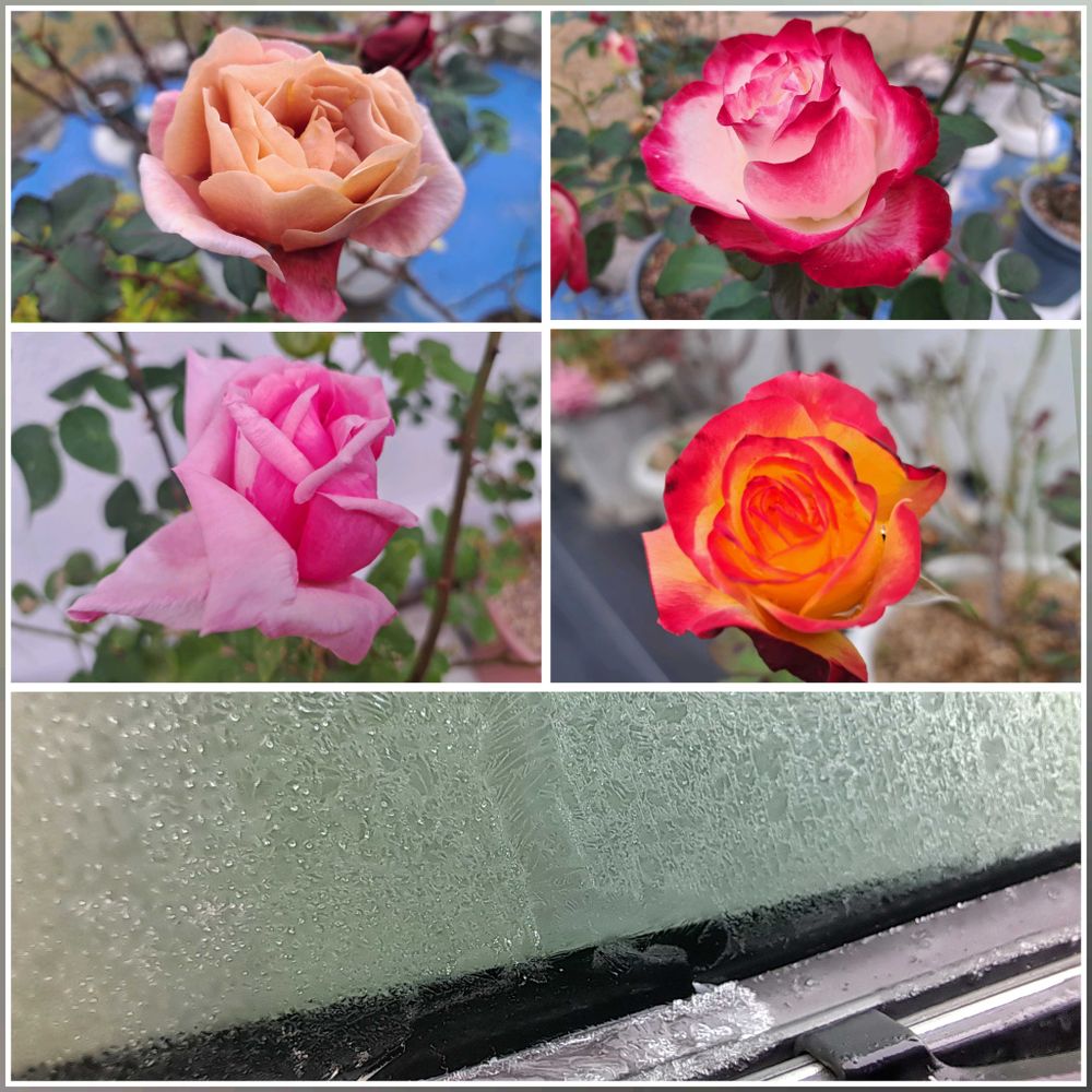 今シーズン初めて車のフロントガラスに霜が❄😲