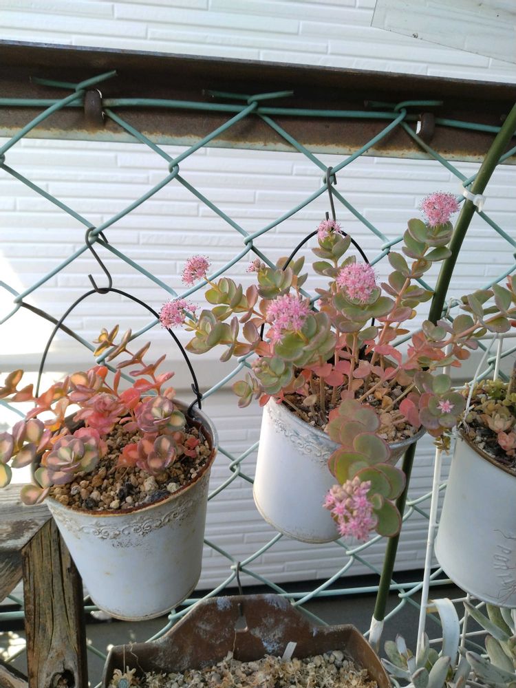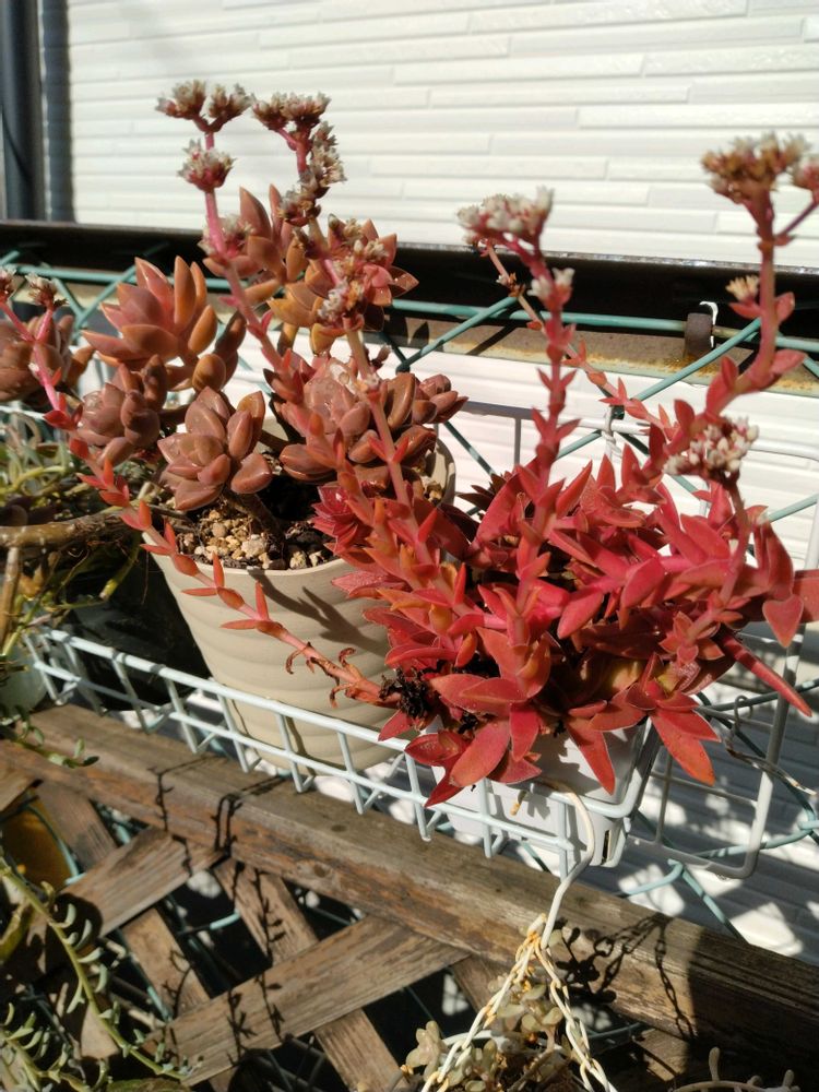 4️⃣ 紅葉してるけど全然蕾も付かなかった斑入りミセバヤと花盛りのミセバヤ🌼