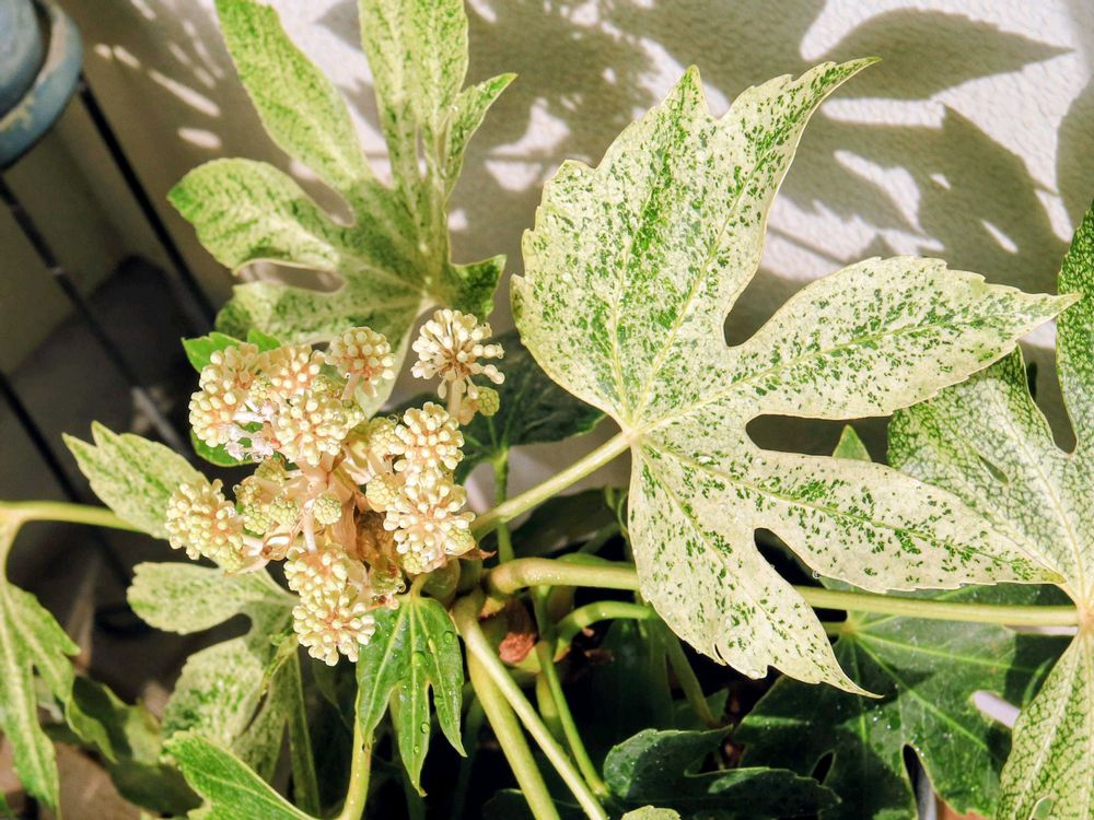 実はこの斑入りのヤツデは『スパイダーウェブ』と呼ばれていて、欧米では、なかなか人気の観葉植物らしいです(^_-)-☆