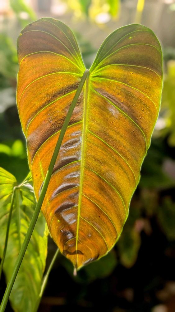 フィロデンドロンとアンスリウムの多くは葉が薄い代わりに紫外線対策としてアントシアニン(赤い色素)を出す遺伝子があります。なので今後スピリタスサンクチとかビレッティアも明るい所に置きたいと思います😁