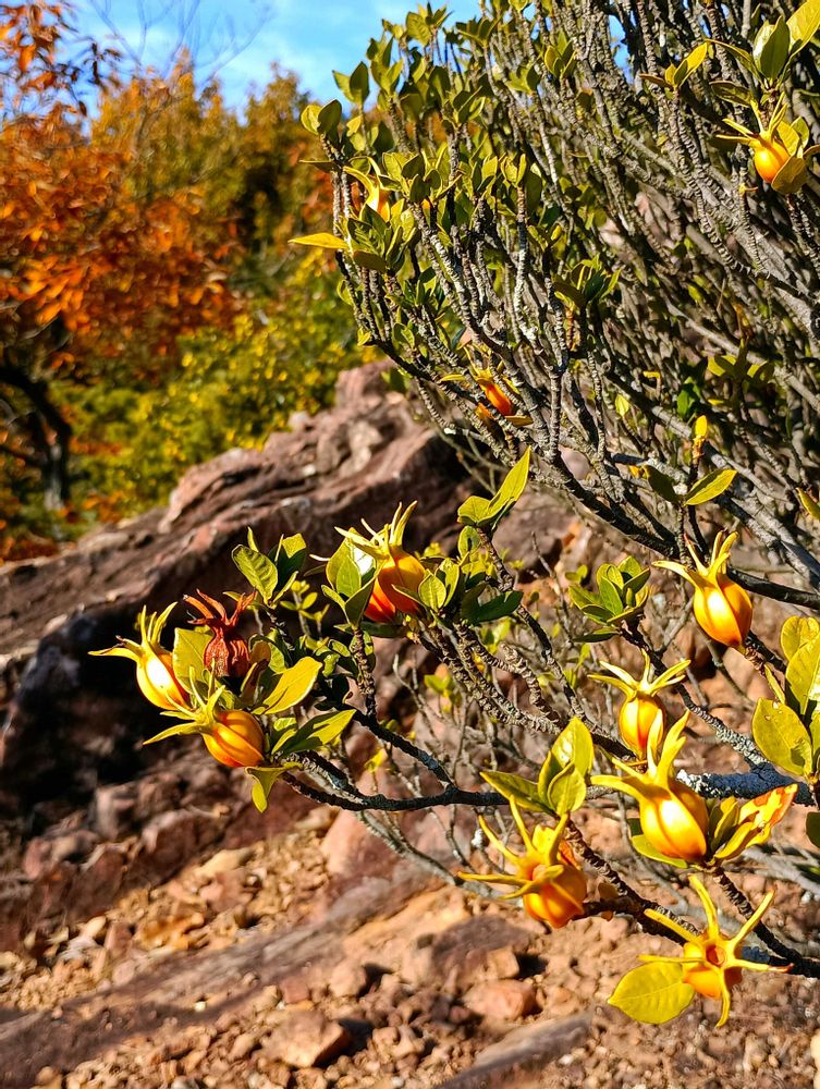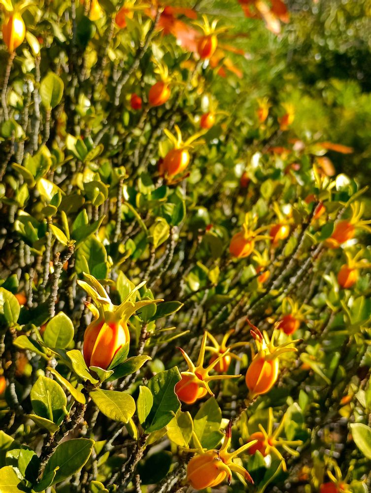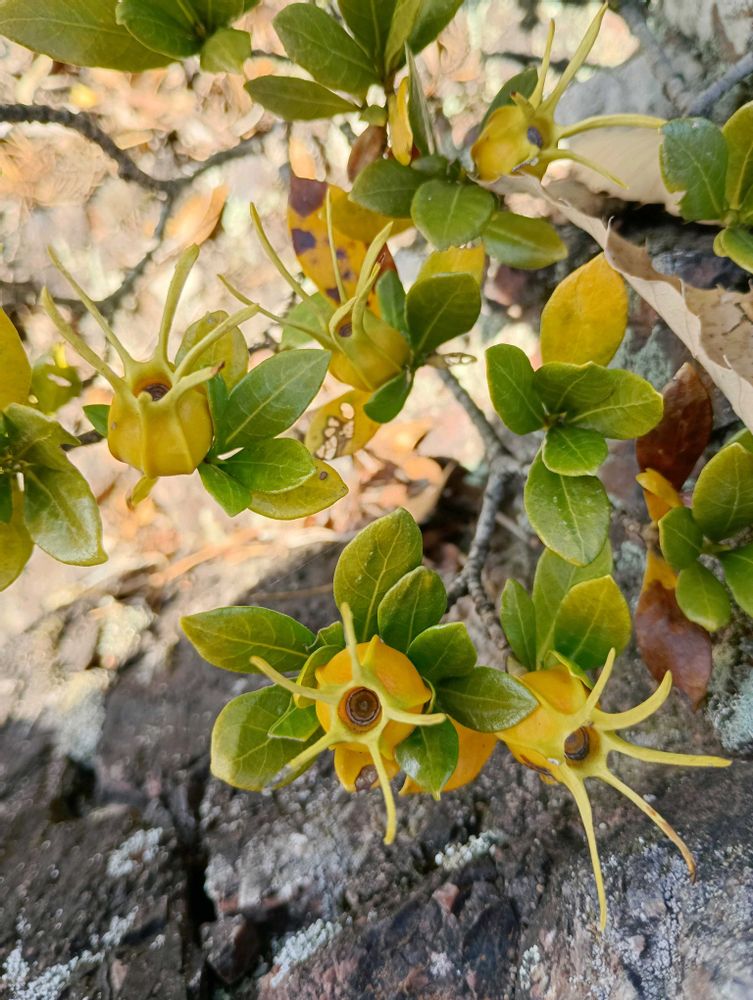 岩場で、太陽の光のいっぱい浴びているクチナシは、沢山の実をつけていました。