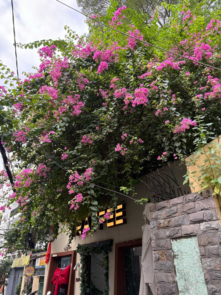 ブーゲンビリアですが…路地に入ったらお茶屋さんの上に素敵に💓咲いて居ました♡👀
