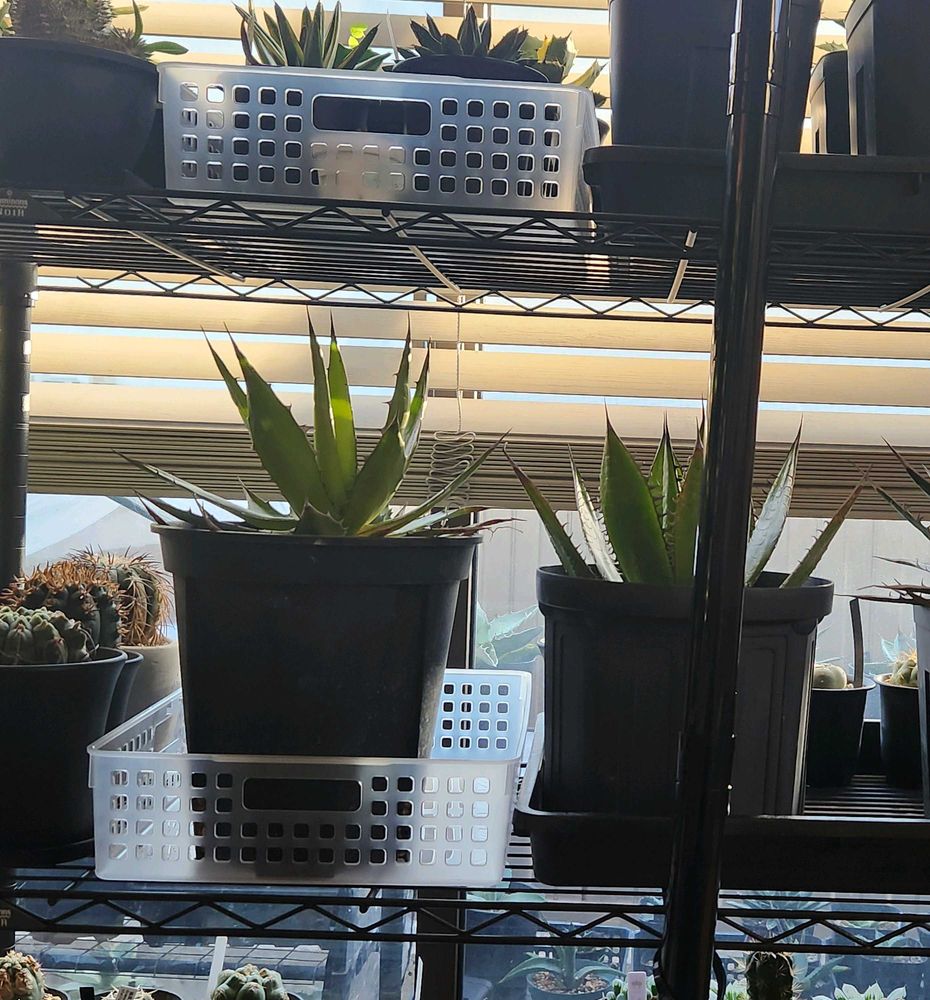 観葉植物棚を、少し後ろに引いて前にアガベ置いたよ🤣