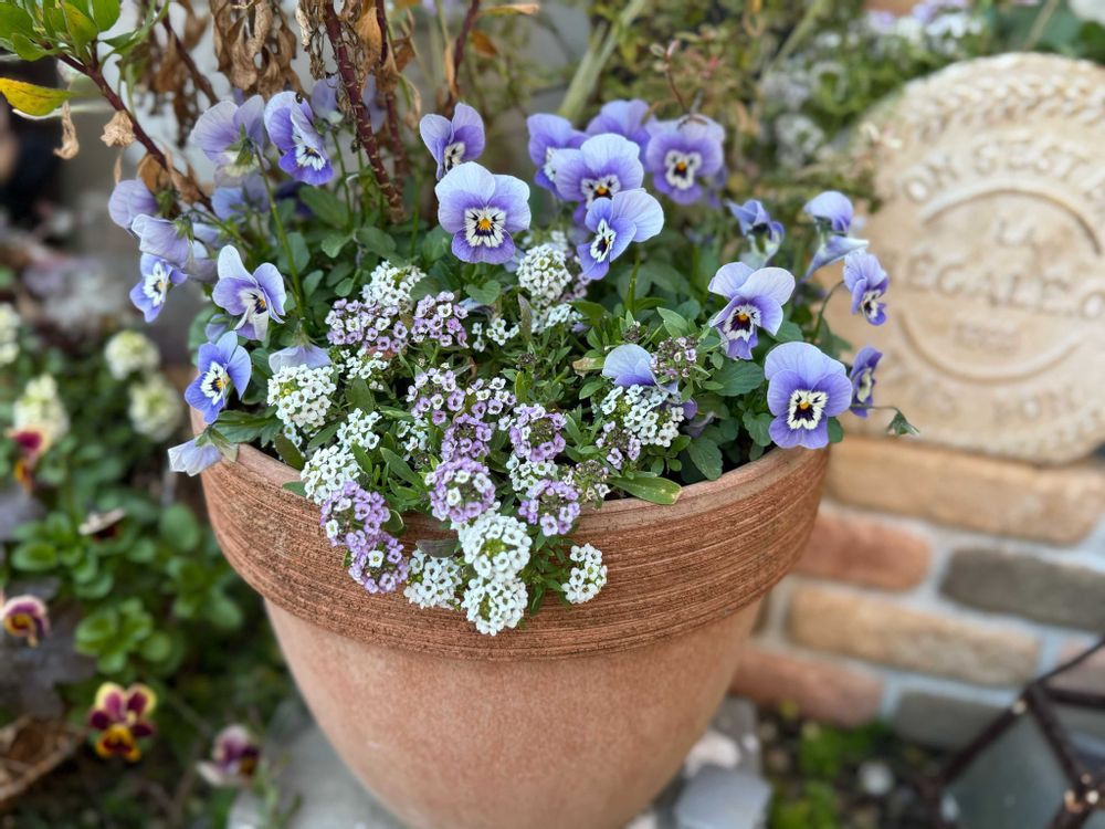 pic1と2は去年の冬や今年の夏の寄せ植えのあとの鉢で、隙間に植えただけなので周りの葉っぱが傷んでます🤣