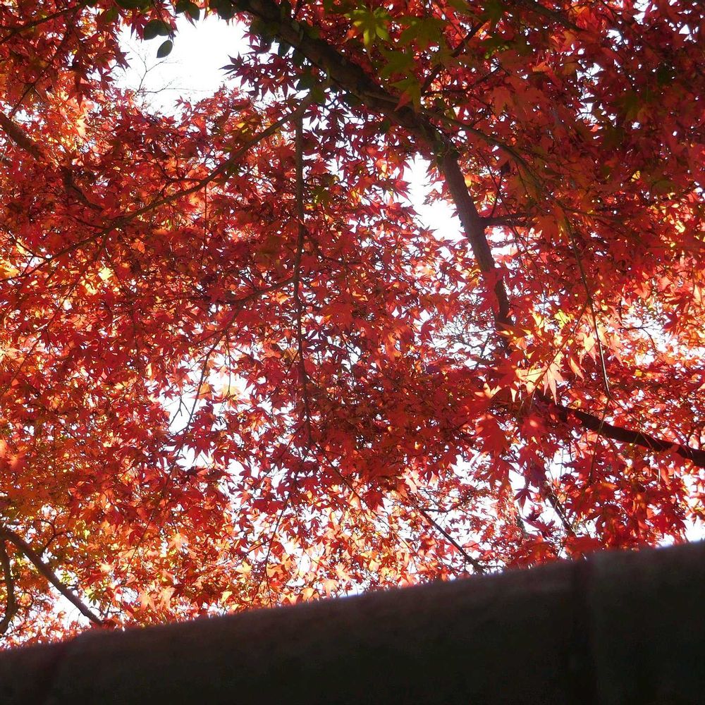 燃えるようなモミジの赤い葉🍁が光っています💕