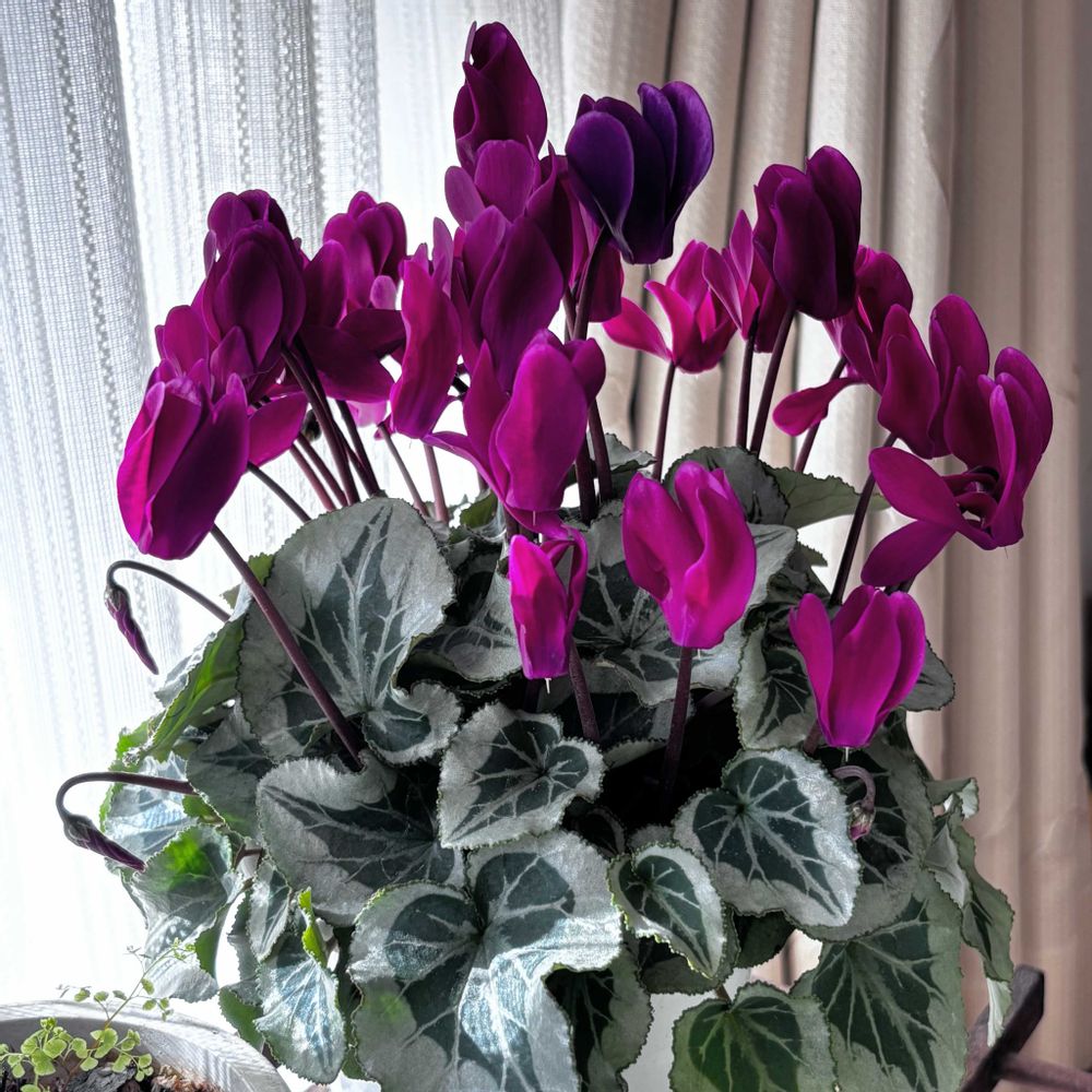 シルバーリーフのシクラメン って珍しいよね? とっても綺麗な色🩷