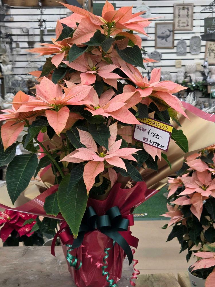 サーモンピンクのポインセチア!素敵ですね(ღ*ˇ ˇ*)。o♡💕