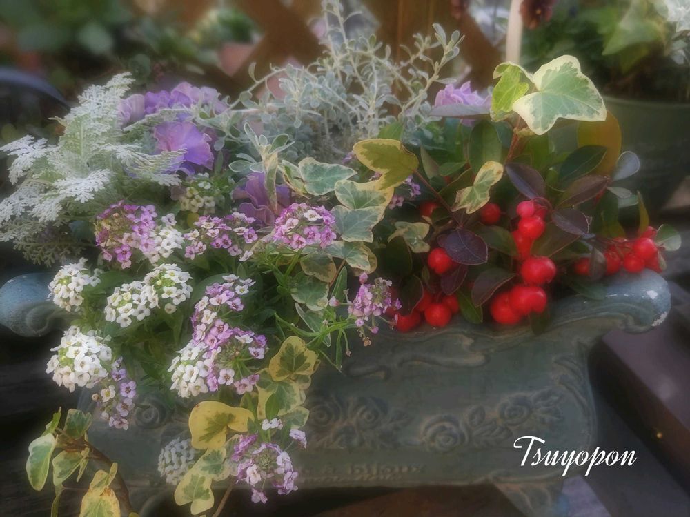 つよぽんさんのアリッサム,チェッカーベリー,ヘデラ 雪ほたるの投稿画像