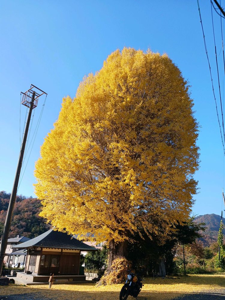 薮田神社と小野大日堂のイチョウ。しっかりザクロ見たの初めてでした。