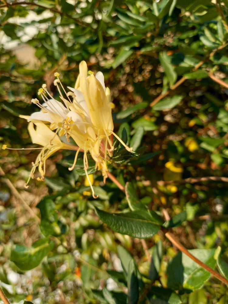 家の近くに、鉄工所があるんですが、そのベランダに、咲いてました。ことりさんの、落とし物から、芽吹いたんでしょう。近くに、スイカズラはありませんでした。