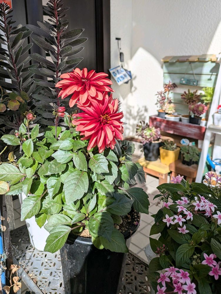 お手頃な価格の子たちで赤白の色合いの寄せ植えにしてみました🥰