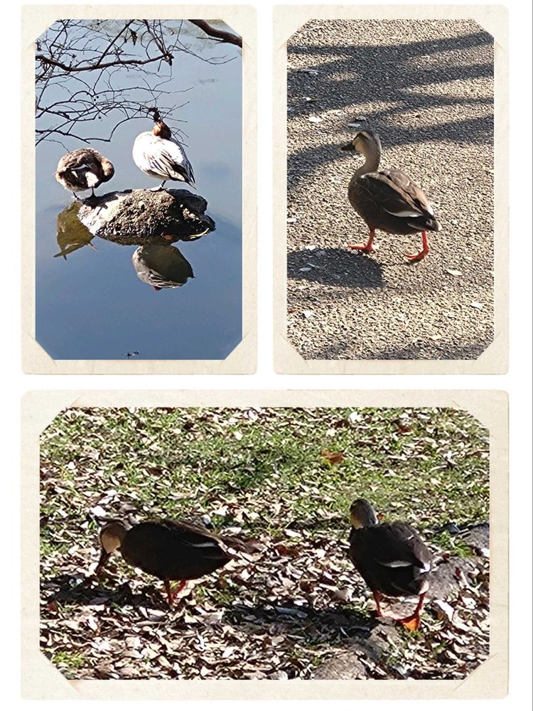 ⑤番外編 🦆さんお散歩中。結構距離が近くても平気みたい。散歩中の🐶にもお互い関心なく平穏😊