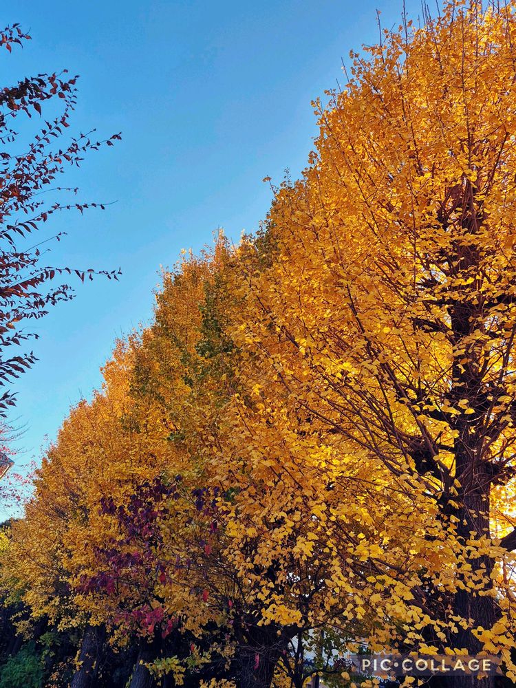 何時も通っている陶芸教室の駐車場の銀杏並木とても綺麗