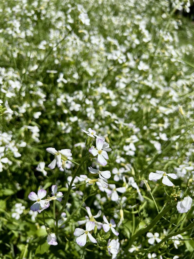 ①ハツカダイコン。満開🤍🤍幻想的ですらある^^;