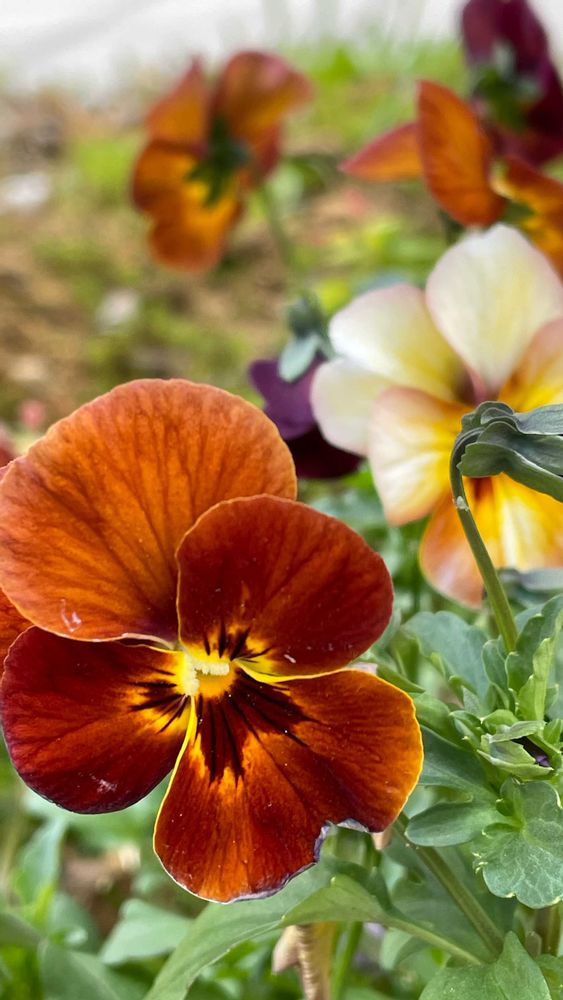 鉢上げのビオラ 傾斜コンテナ寄せ植えは 過去picから🤎🧡🧡🤎