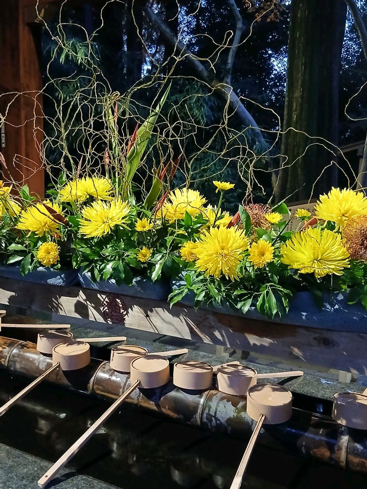 鮮やかな💛菊💛が素敵な手水場