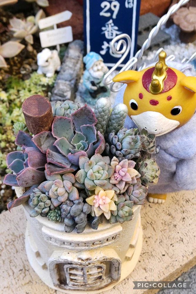 1枚目は、「Succulent Noel 2025」で購入した、あーちゃんさんの鉢にくるみさんチョイスの苗を寄せ植えしました。ちょっとだけ、自宅のマジョール追加💕