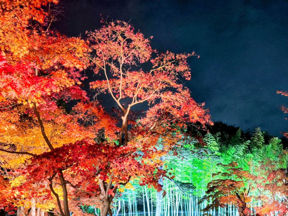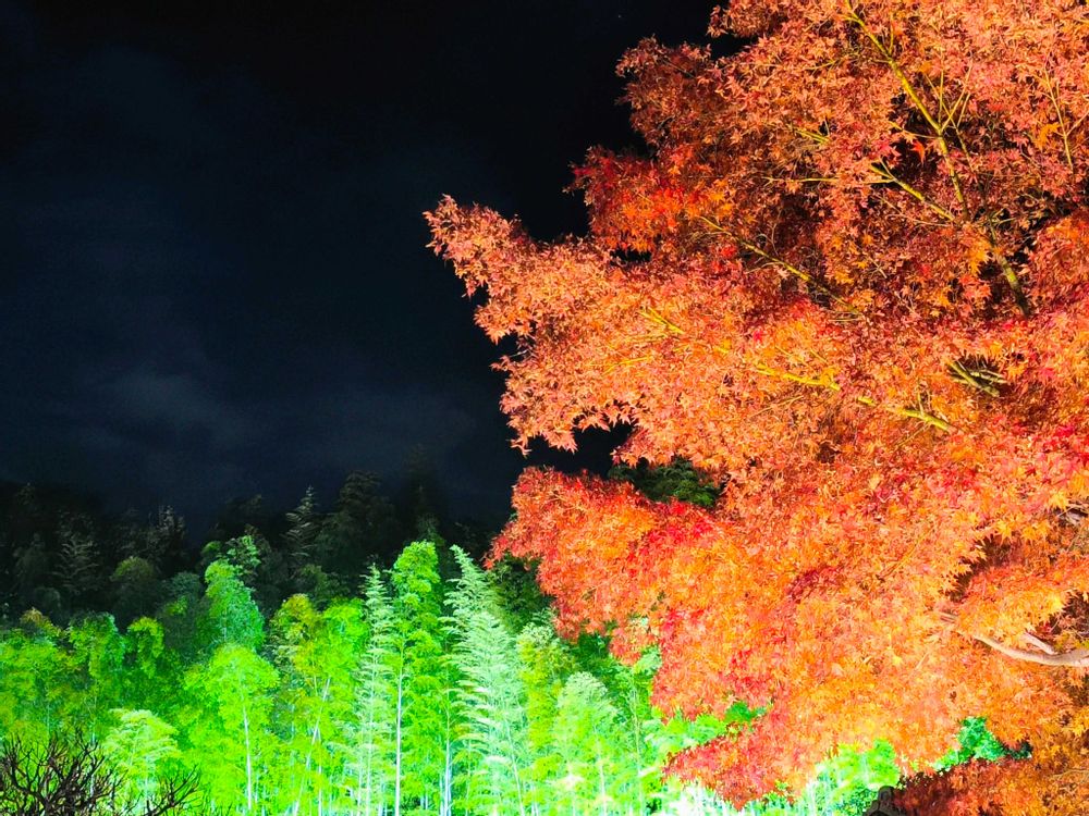 それでもライトに照らされたモミジや竹林、その他の木々は妖艶でしたが✨