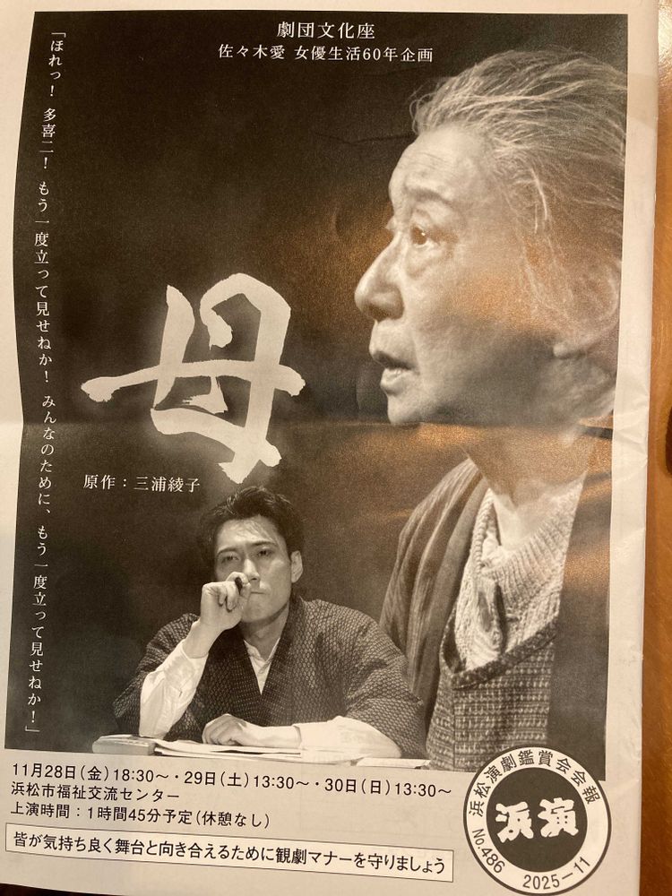 小林多喜二のお母さんの物語。主演の佐々木愛さん、女優生活60年とか😳熱演されてました。