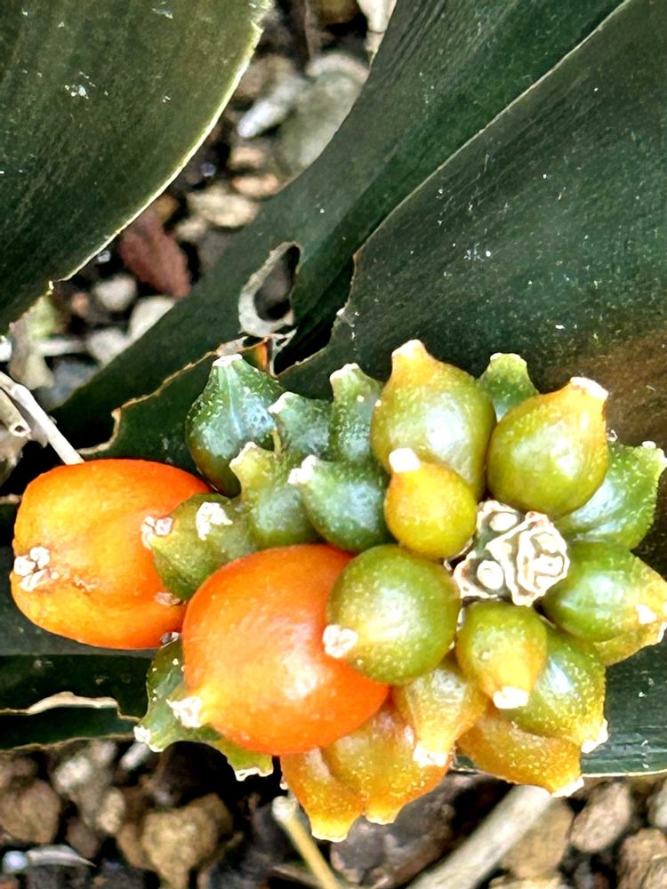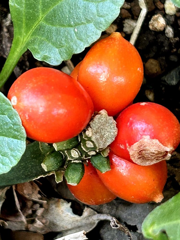オモトが少し色づいて来ましたが、とても不揃いです😅2枚目は去年ので色付きはいいですが、数が少ないですね😅3枚目は今日の花大根で頂き物です😉🌿💕🌿