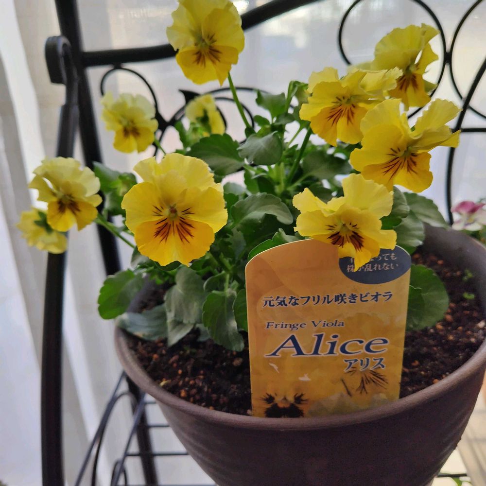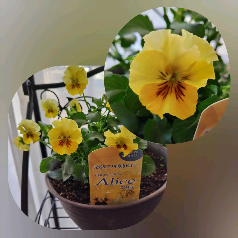 3枚め…元気なフリル咲きビオラ、アリスはお一人様植えです⤴️⤴️