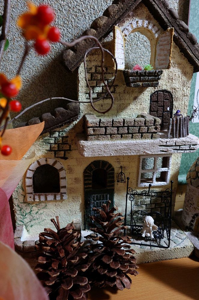④ 昨日しーちゃんと🤳カシャした松ぼっくりは玄関に置きました(*´艸`)