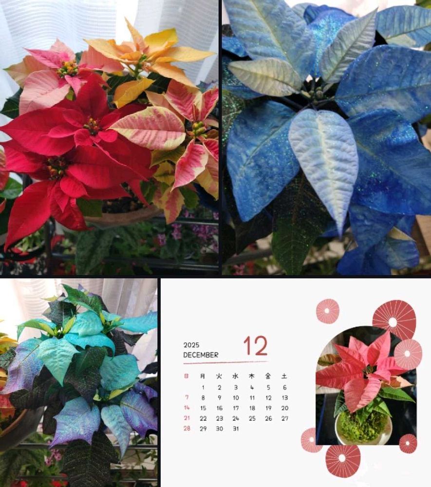 コラージュのポインセチアさんは、青🩵系の色がありましたが、今は、そういうポインセチアもあるのですか⁉️