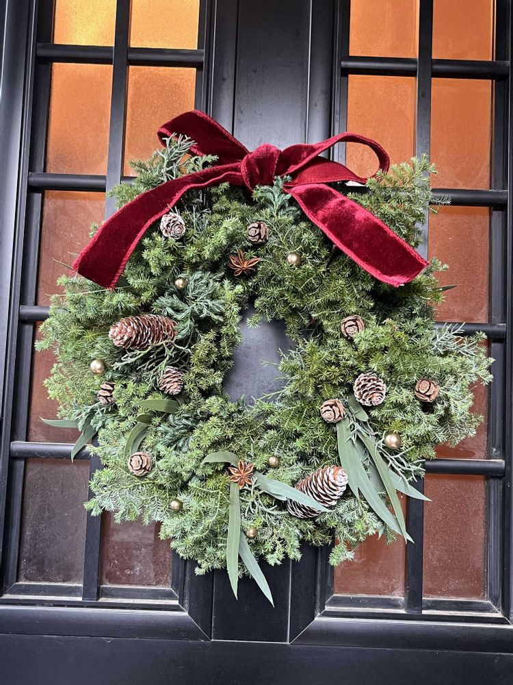 北欧スタイルのクリスマスリースをコニファーやユーカリ・メタセコイア等の生のリーフを使って作成しました🧑🎄🎄♪