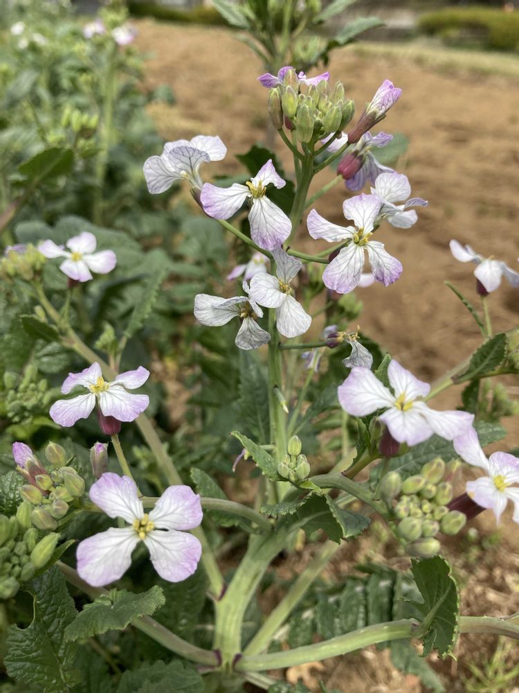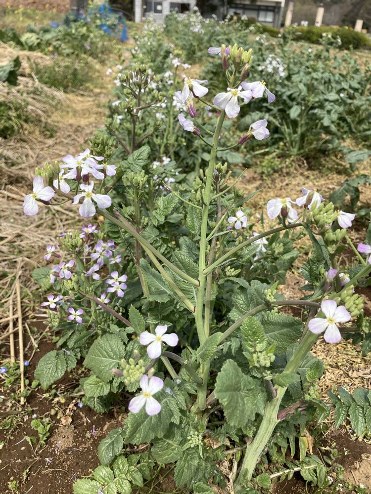今日のお花「ダイコン」のような花が公園の畑で咲いていた