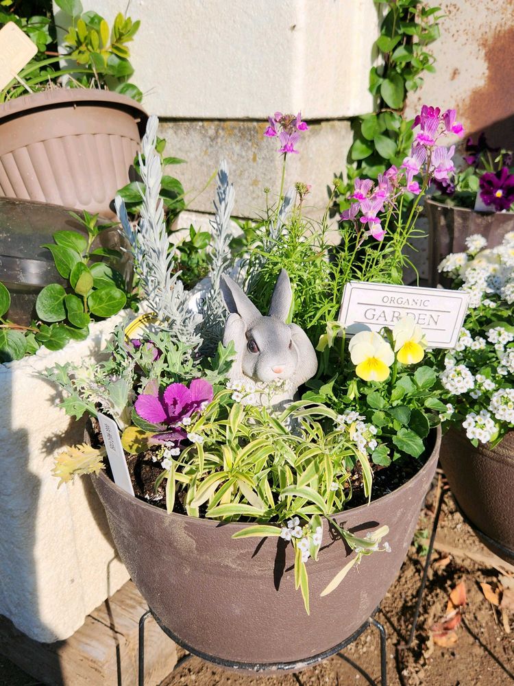 いつもはパンビオちゃん達をメインに考えて寄せ植えにするのですが、今回はリナリアちゃんがとても可愛いかったので、リナリアちゃんに合うように他のお花を選びました(*^^*)