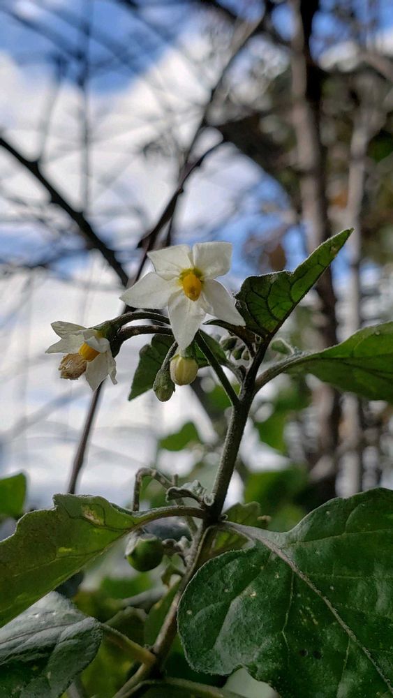 会社の敷地内で ナスの花に似た