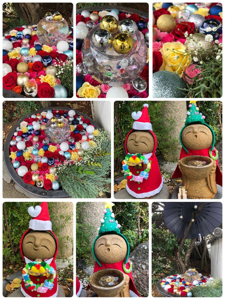 クリスマスバージョンの花手水とかわいいお地蔵さま💕長建寺にて😊