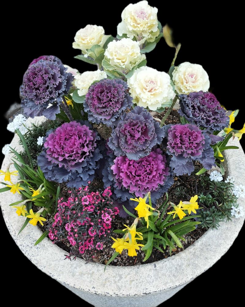 綺麗に寄せ植えされた葉牡丹さん