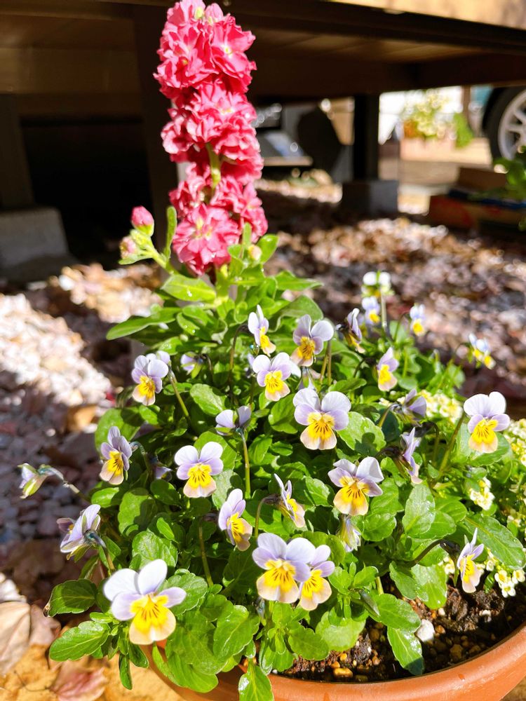 2週間前に寄せた鉢植えのお花たちもようやく定着したかな❓
