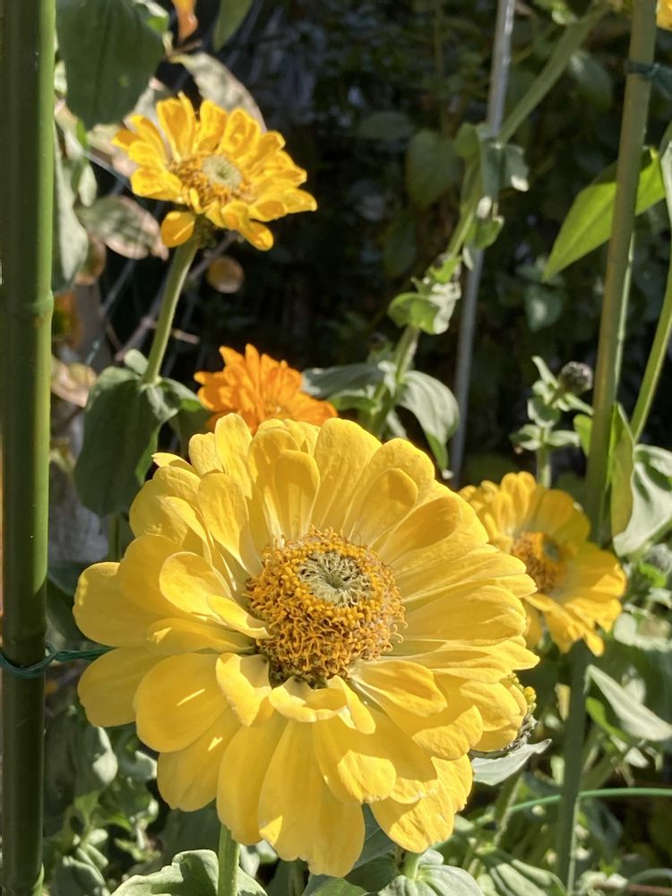 里はんさんのジニア,きく 菊,石蕗(つわぶき)の投稿画像