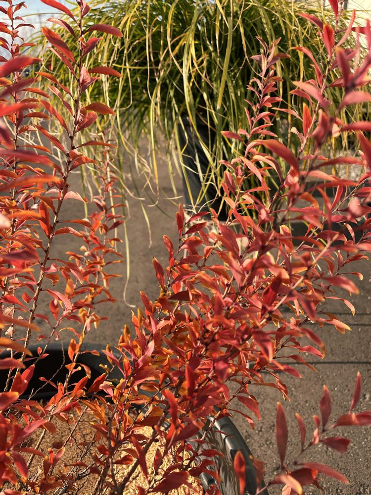 妙に暖かい午後です。紅葉した雪柳とカレックスが風にそよいでいたので撮影