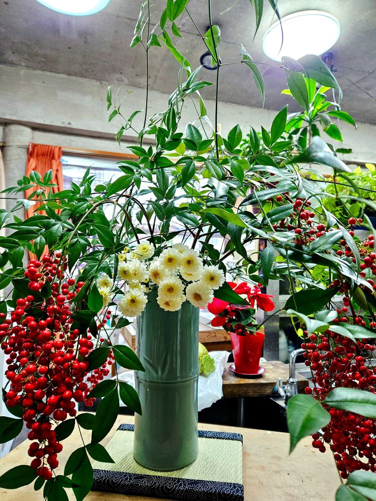 友人から南天と菊と大根が届きました✌️😄今年は南天の実が出来過ぎらしいです🔴😅