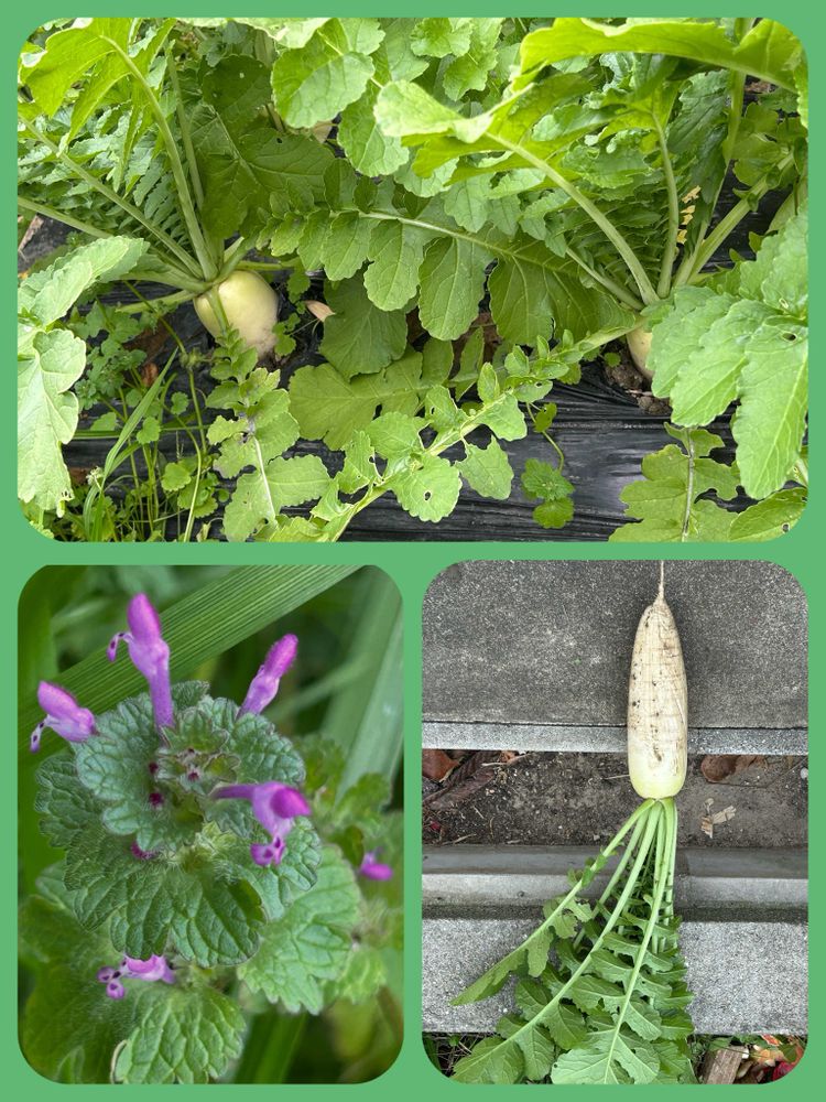 畑のダイコン 大きそうに見えてちっちゃい…大根の味噌煮にしようかなあー