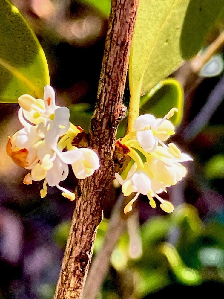 ちょうど花が咲いていて、葉以外はヒイラギと同じです!