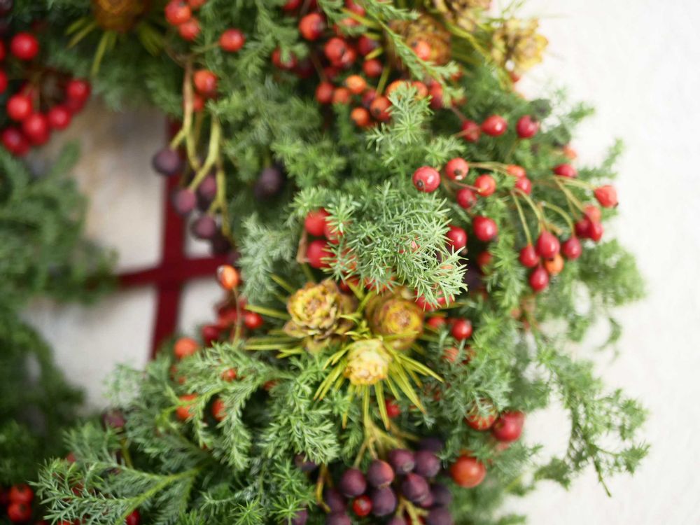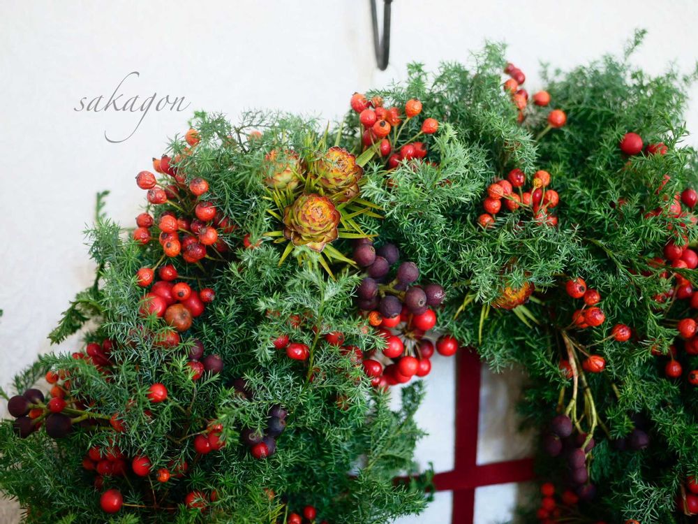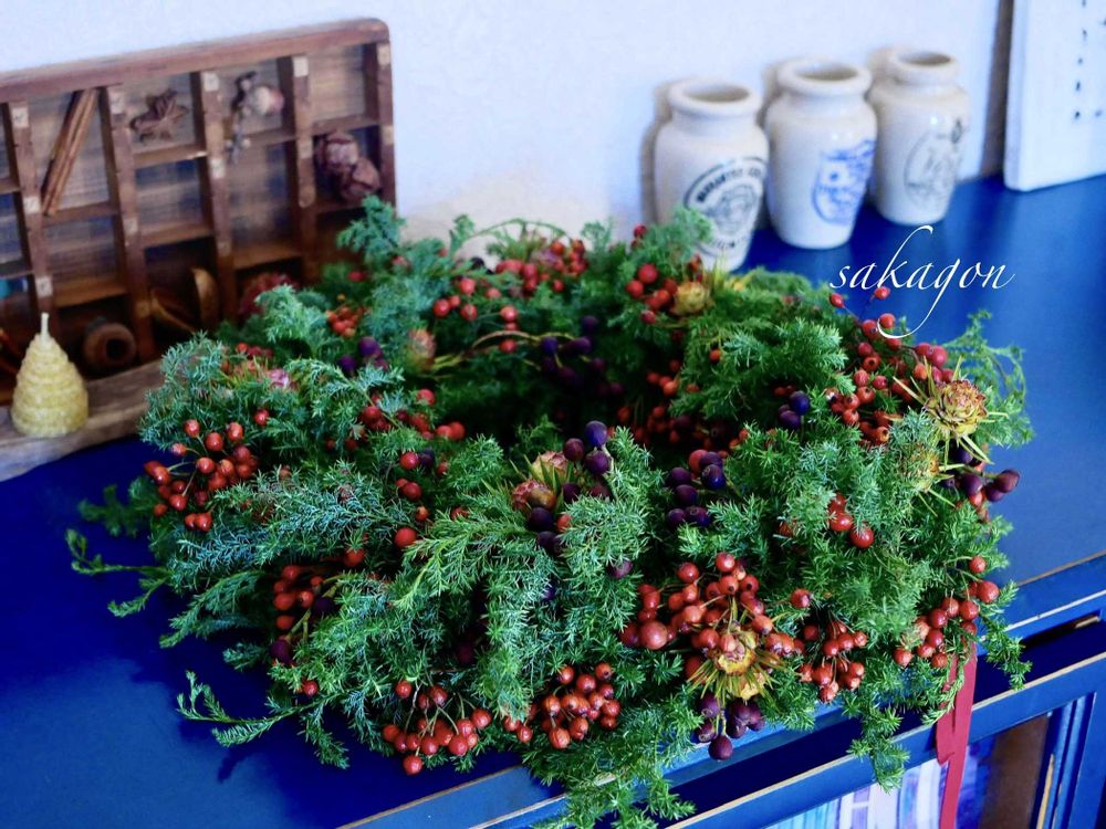 赤い実がいっぱいで、とてもかわいいリースですね♡