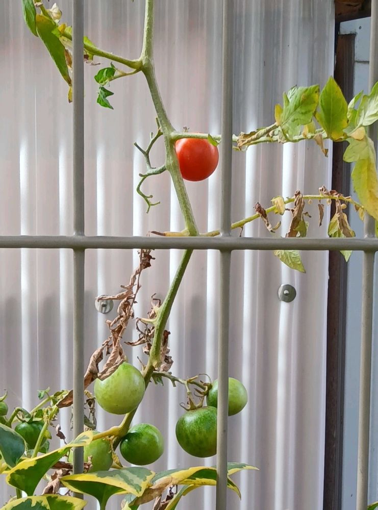 いつまでも花が咲き 実もなるので 引き抜けずにいたミニトマト🍅