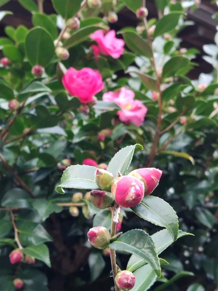 ①②③④実家の山茶花のお花が咲き始めていました💓✨