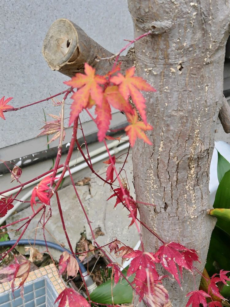 一本だけ出た細い枝の葉っぱが紅葉していました🍁🍁🍁🤗
