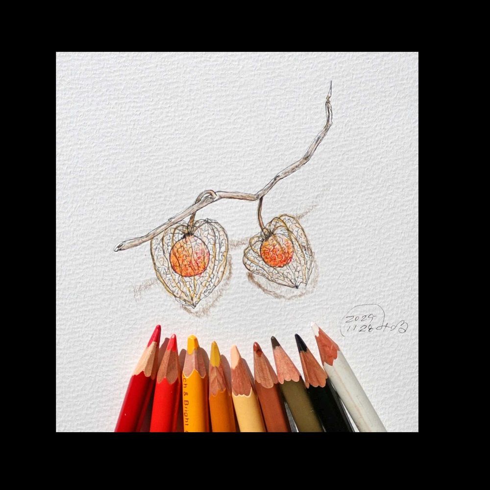 地下茎の為ひょんな所から出てくるのでいつも枯れるまでそのままにしています、毎年透かしホウズキになっちゃいまよ、今年は形が良かったのでデッサン向きでした😀