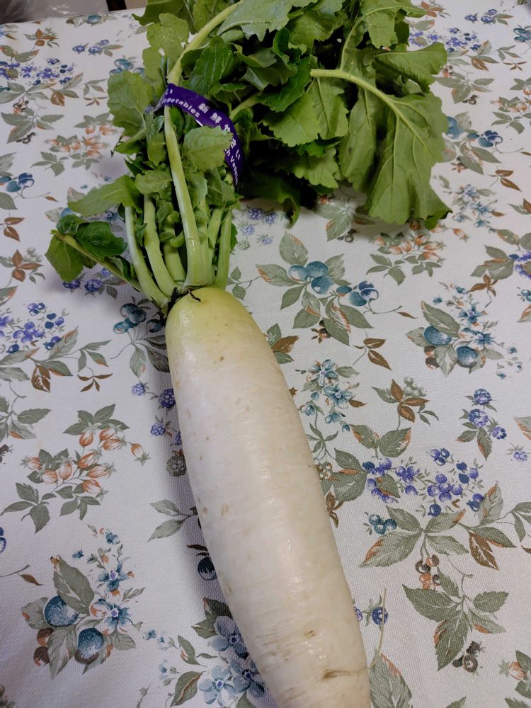 先日、農家さんから頂いたダイコンの葉が余りにも立派なので、写真を撮って置きました。葉も、大好きですがスーパーのは中々葉付きが販売されていませんよね💦