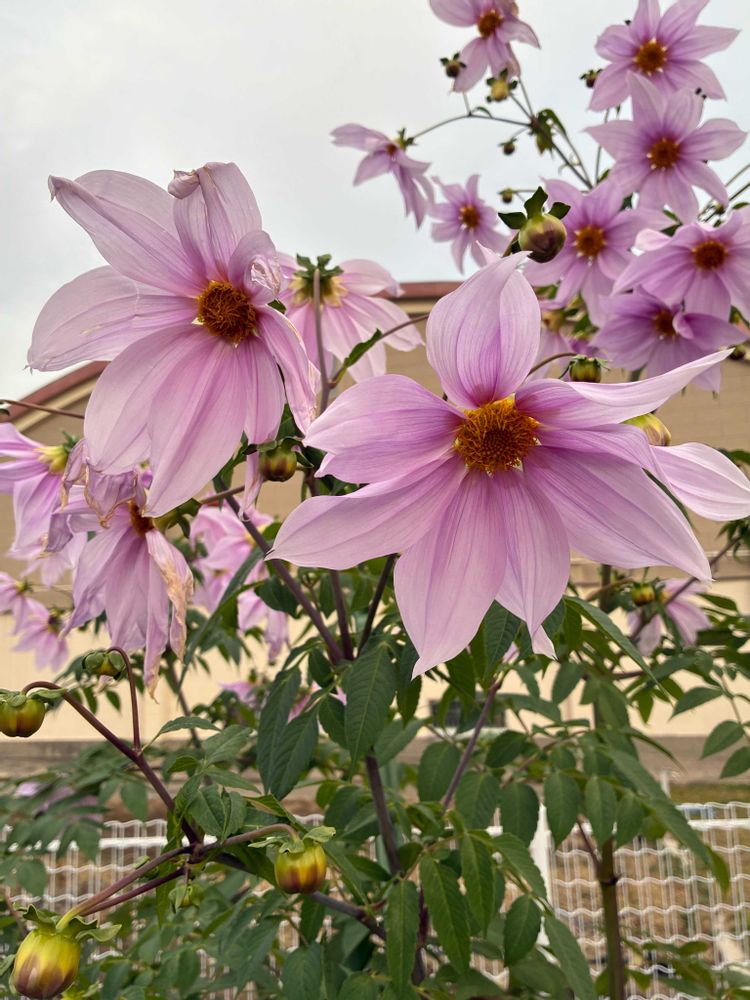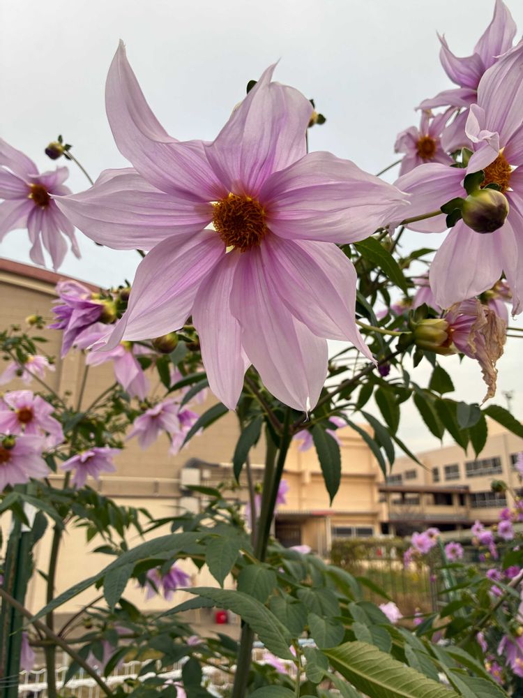 道路沿いの花壇にて、八重咲きや一重咲きの「皇帝ダリア」をパチリ!📸🌸🌿😄🤗🌞✌️