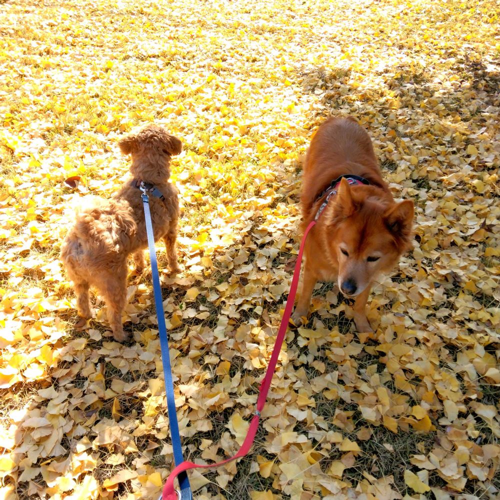 ワンコは銀杏の匂いがちょっと嫌そうでしたよꉂ🤣𐤔
