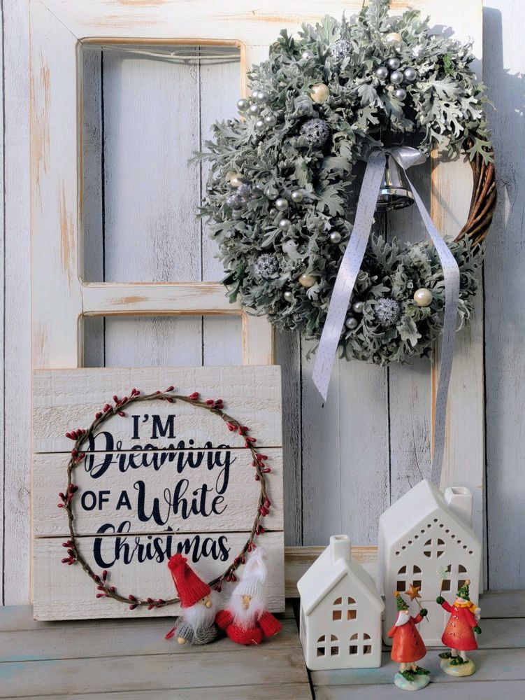一昨日(土曜日)にシロタエギクのホワイトクリスマスリース手仕事に夜なべをしながら夢中〜😉😎