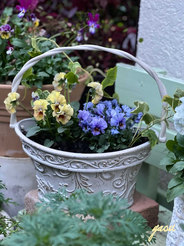 パンジー寄せ鉢からもう素敵です💓アクアレールのひらひら素敵ですね♡